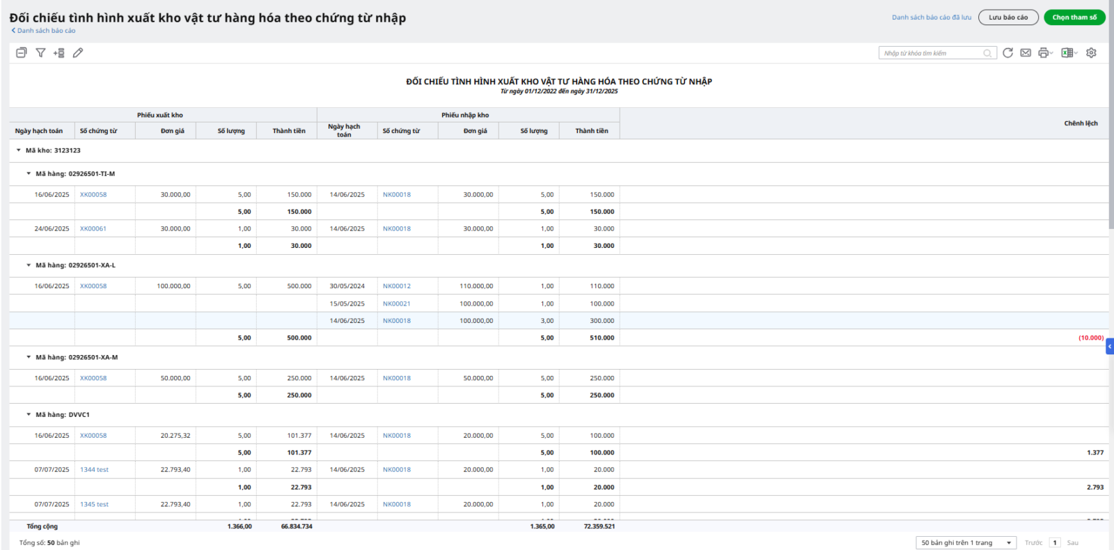 - Giới thiệu về báo cáo đối chiếu xuất kho theo chứng từ nhập