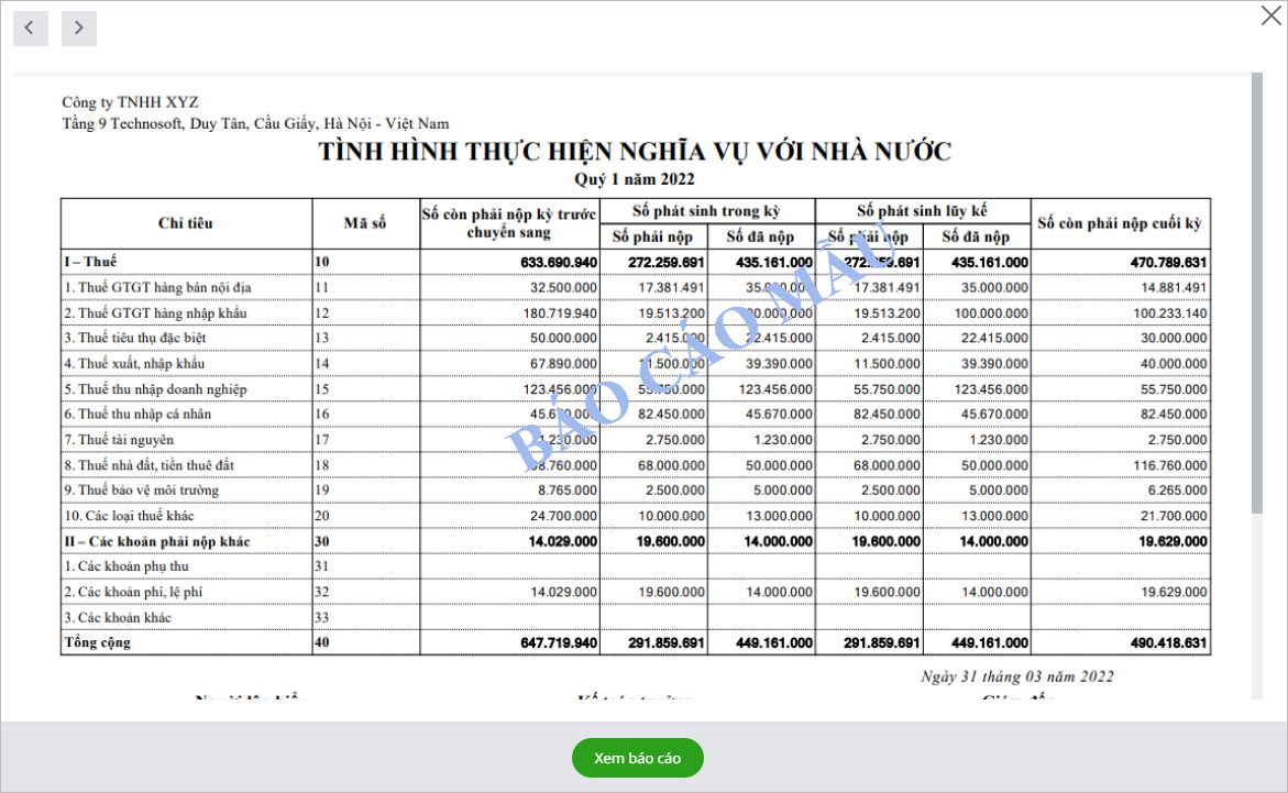 - Cách truy cập và xem báo cáo Tình hình thực hiện nghĩa vụ với nhà nước