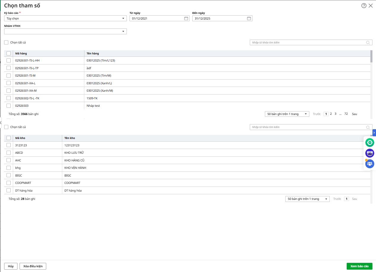 Bước 2: Thiết lập các tham số báo cáo, nhấn Xem báo cáo: