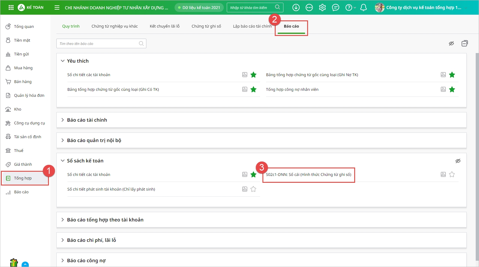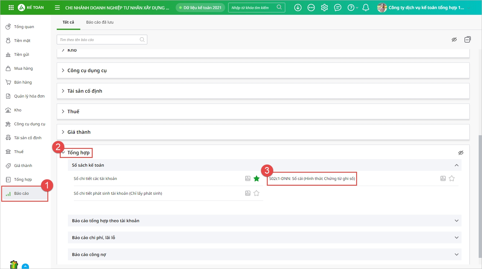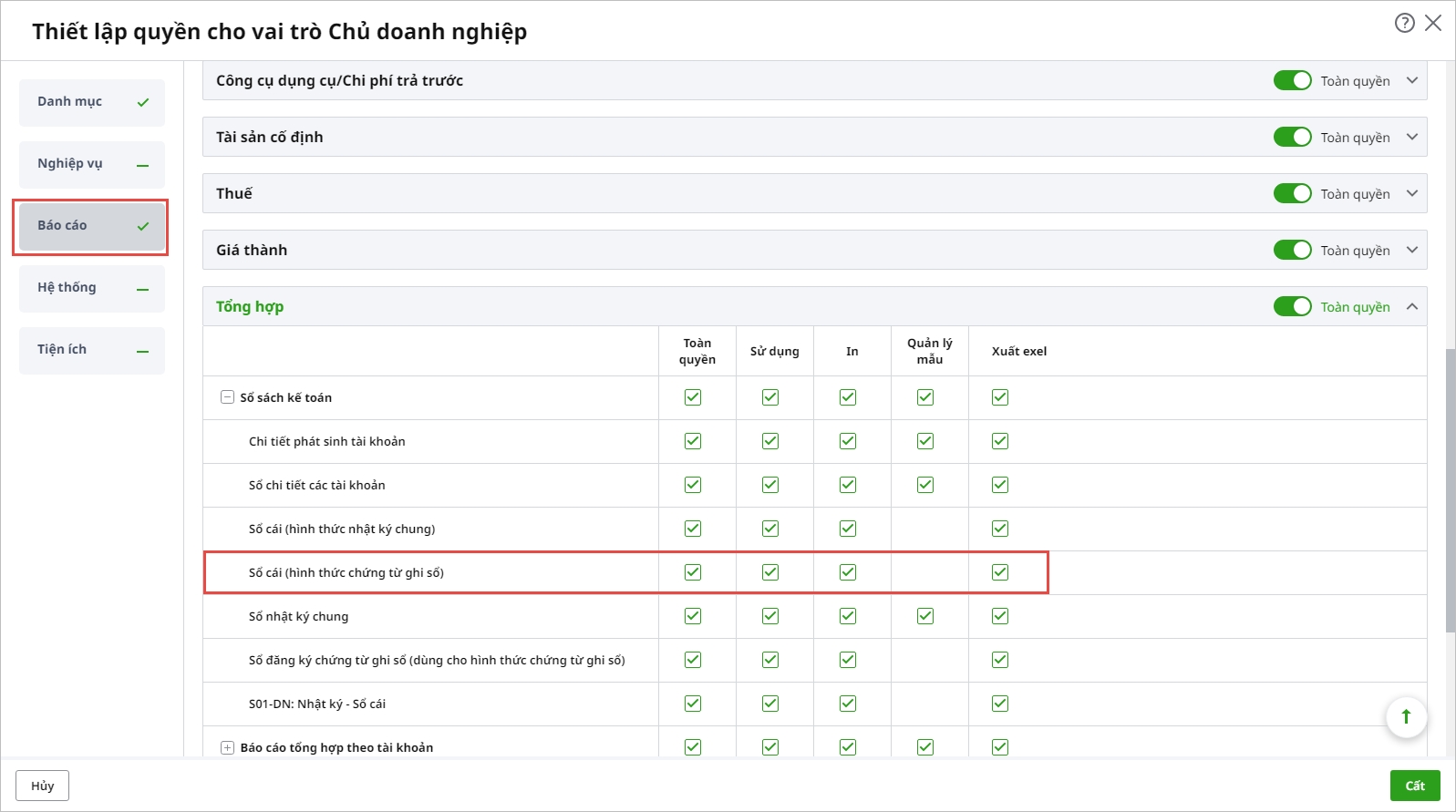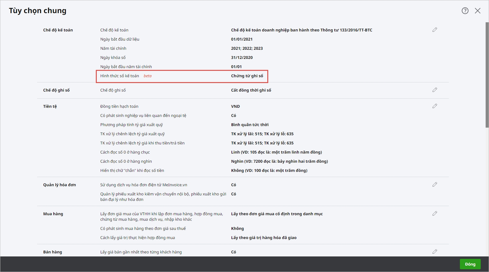 2.1 Kiểm tra hình thức ghi sổ2.2 Truy cập báo cáo Sổ cái (Hình thức Chứng từ ghi sổ) |