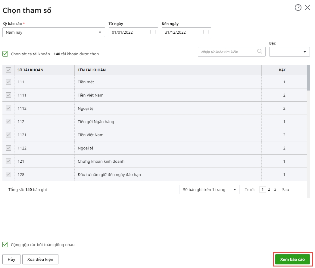 Mục đích: Bài viết hướng dẫn cách sử dụng báo cáo Sổ cái đối với hình thức chứng từ ghi sổ trên phân hệ Tổng hợp.