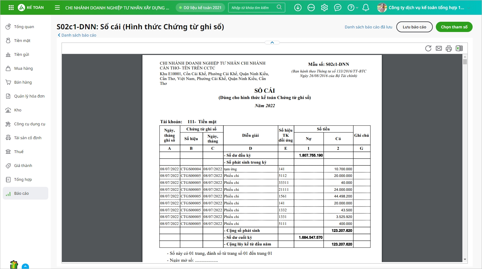 - Truy cập và sử dụng báo cáo Sổ cái (Hình thức Chứng từ ghi sổ).