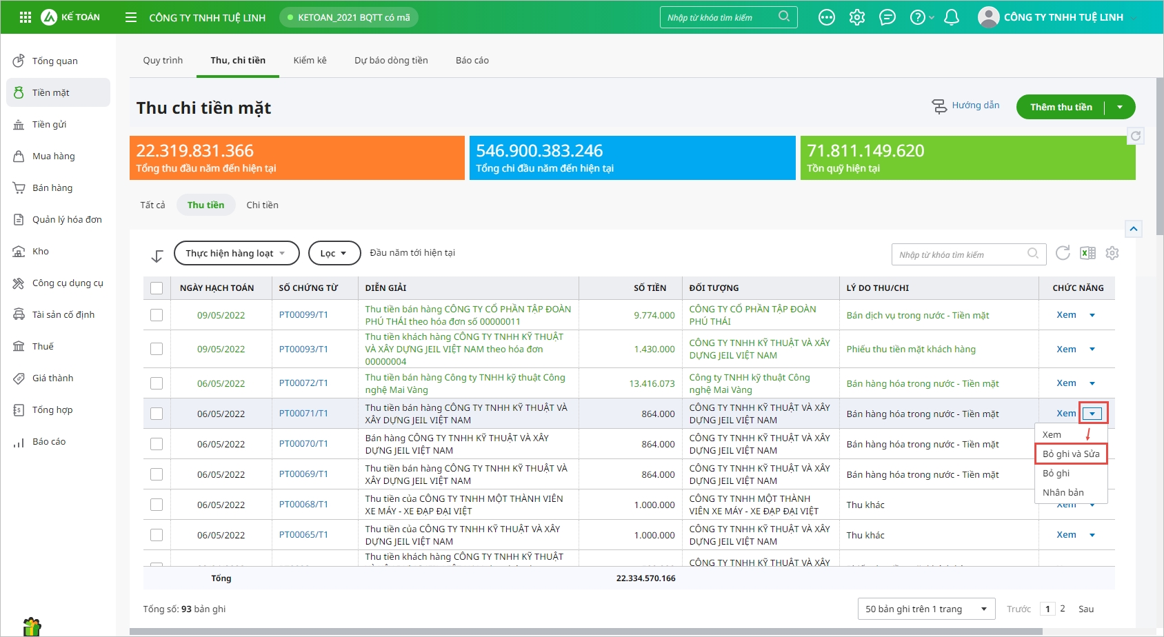 - Giới thiệu chức năng Bỏ ghi và sửa chứng từ.