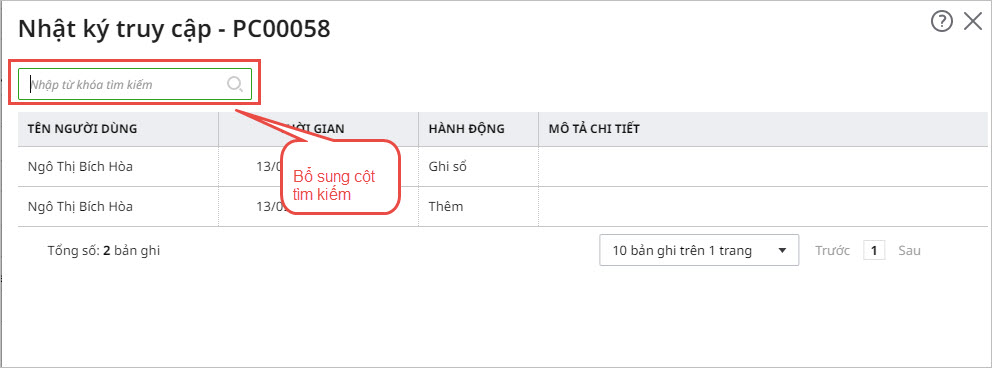- Giới thiệu chức năng tìm kiếm trên giao diện nhật ký truy cập
