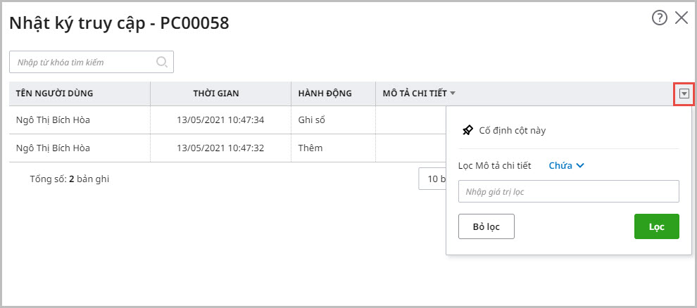 - Hướng dẫn lọc các cột thông tin trên nhật ký truy cập