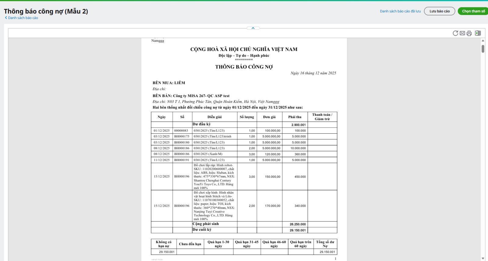 - Bổ sung mẫu báo cáo công nợ
