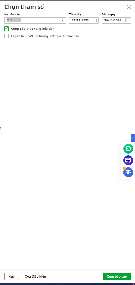 Bước 2: Chọn tham số xem báo cáo, Nhấn Xem báo cáo.