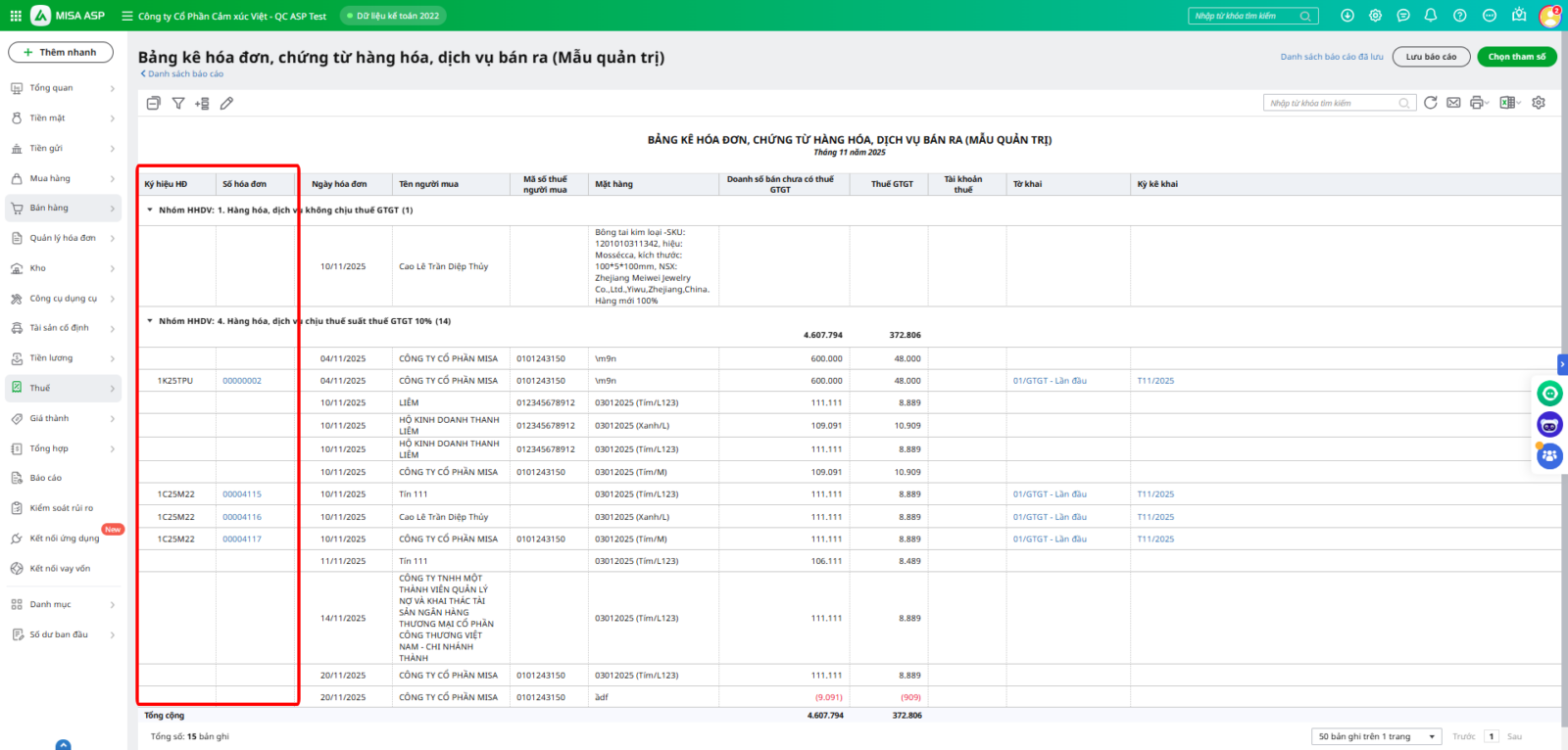 - Giới thiệu tính năng bổ sung ký hiệu hóa đơn trên bảng kê.