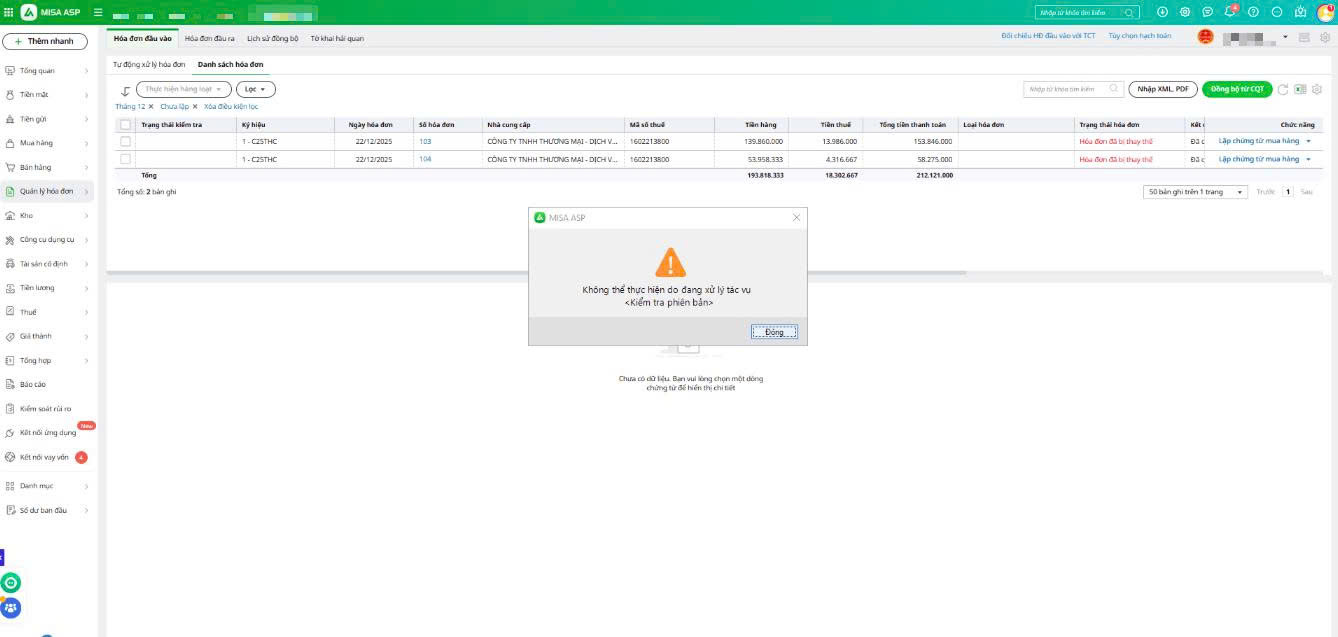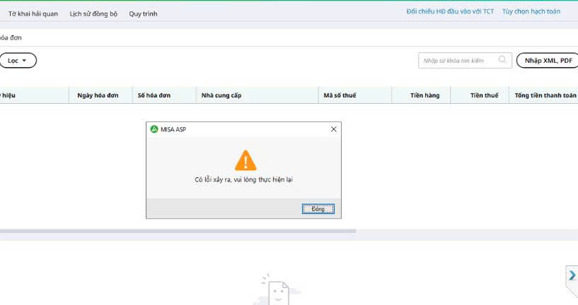Mục đích: Hướng dẫn xử lý các trường hợp thường gặp khi đồng bộ hóa đơn từ Cổng Thuế về phần mềm MISA ASP.