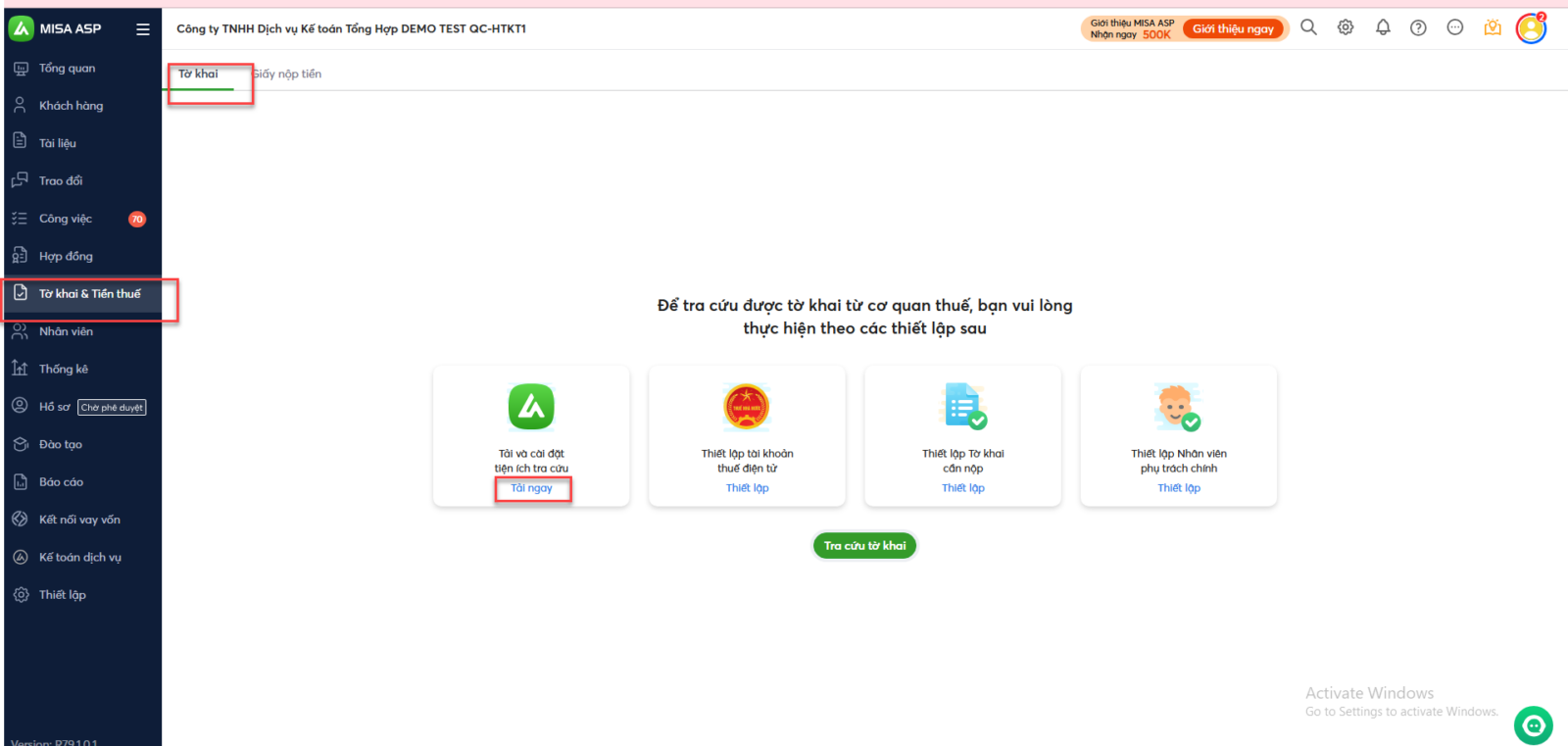 Bước 1: Truy cập MISA ASP quản lý /vào phân hệ Tờ Khai & Tiền Thuế (hoặc nhấn vào link https://aspapp.misa.vn/app/taxdeclaration) Bước 2: Chọn tab Tờ khai / nhấn Tải ngay tại biểu tượng ASP Bước 3: Tải xong thì cài đặt lại theo hướng dẫn tại đây. Sau đó đồng bộ lại hoá đơn.