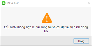 • Biểu hiện: Đồng bộ hóa đơn báo lỗi Cấu hình không hợp lệ. Vui lòng tải và cài đặt lại tiện ích đồng bộ