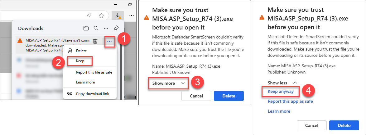 Trường hợp 7: Lỗi tải bộ cài: “MISA.ASP_Setup_R…exe isn’t commonly downloaded. Make sure you trust … before you open it”