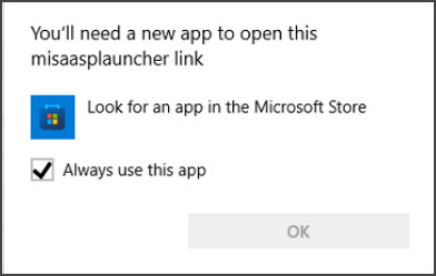 • Biểu hiện: Khi đồng bộ hoặc tải bộ cài công cụ đồng bộ hoá đơn thì báo lỗi “You’ll need a new app to open this misaasplauncher link. Look for an app in the Microsoft Store. Always use this app”