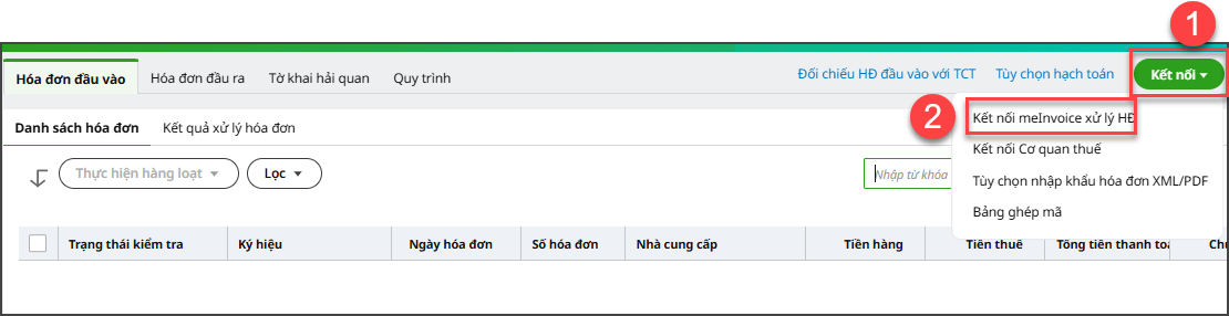 Bước 2: Kết nối lại với MeInvoice xử lý hoá đơn (Invbot) và kiểm tra lại hóa đơn.