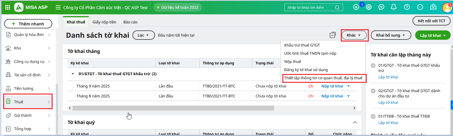 - Thiết lập thông tin cơ quan thuế, đại lý thuế