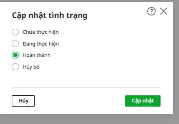 Nội dung bài viết bao gồm hướng dẫn thao tác cập nhật trạng thái và mô tả kết quả sau khi thực hiện.