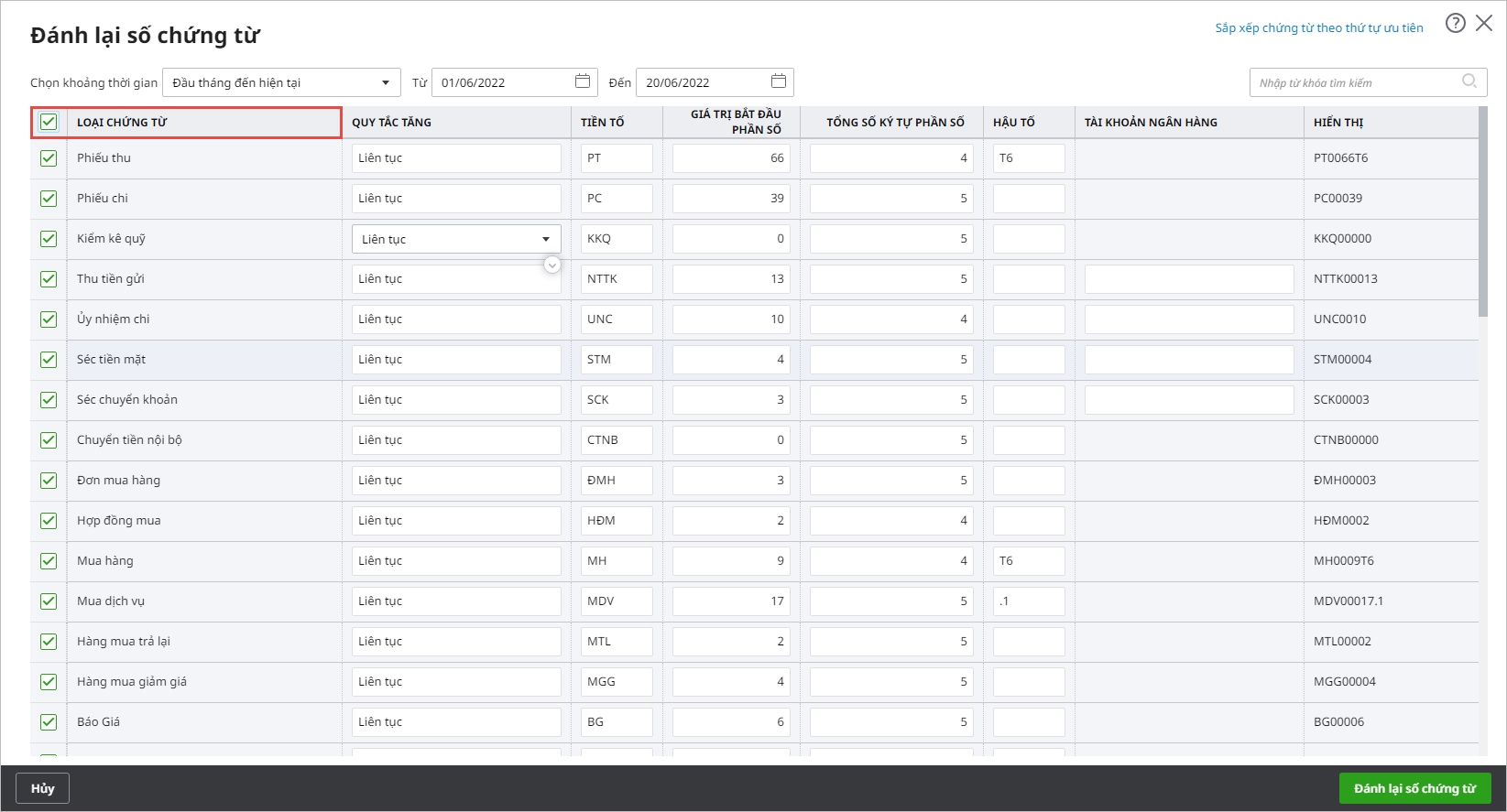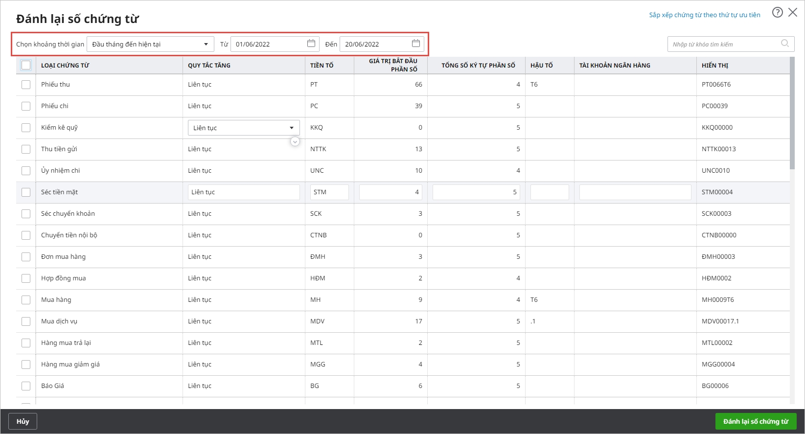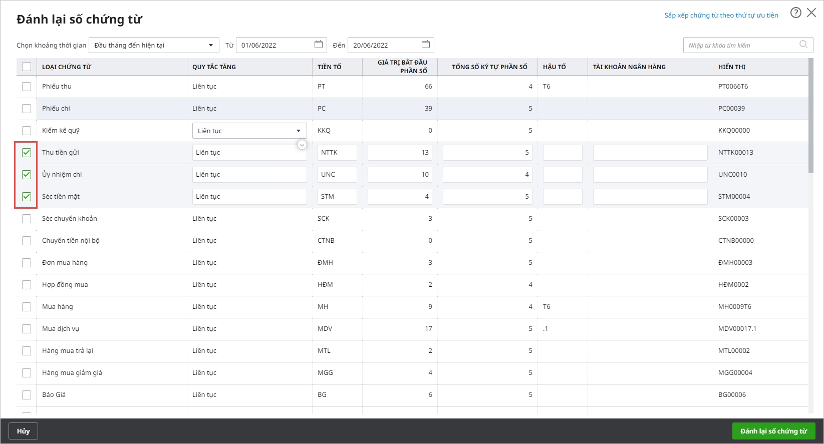 - Hướng dẫn chi tiết các bước thực hiện đánh số chứng từ hàng loạt