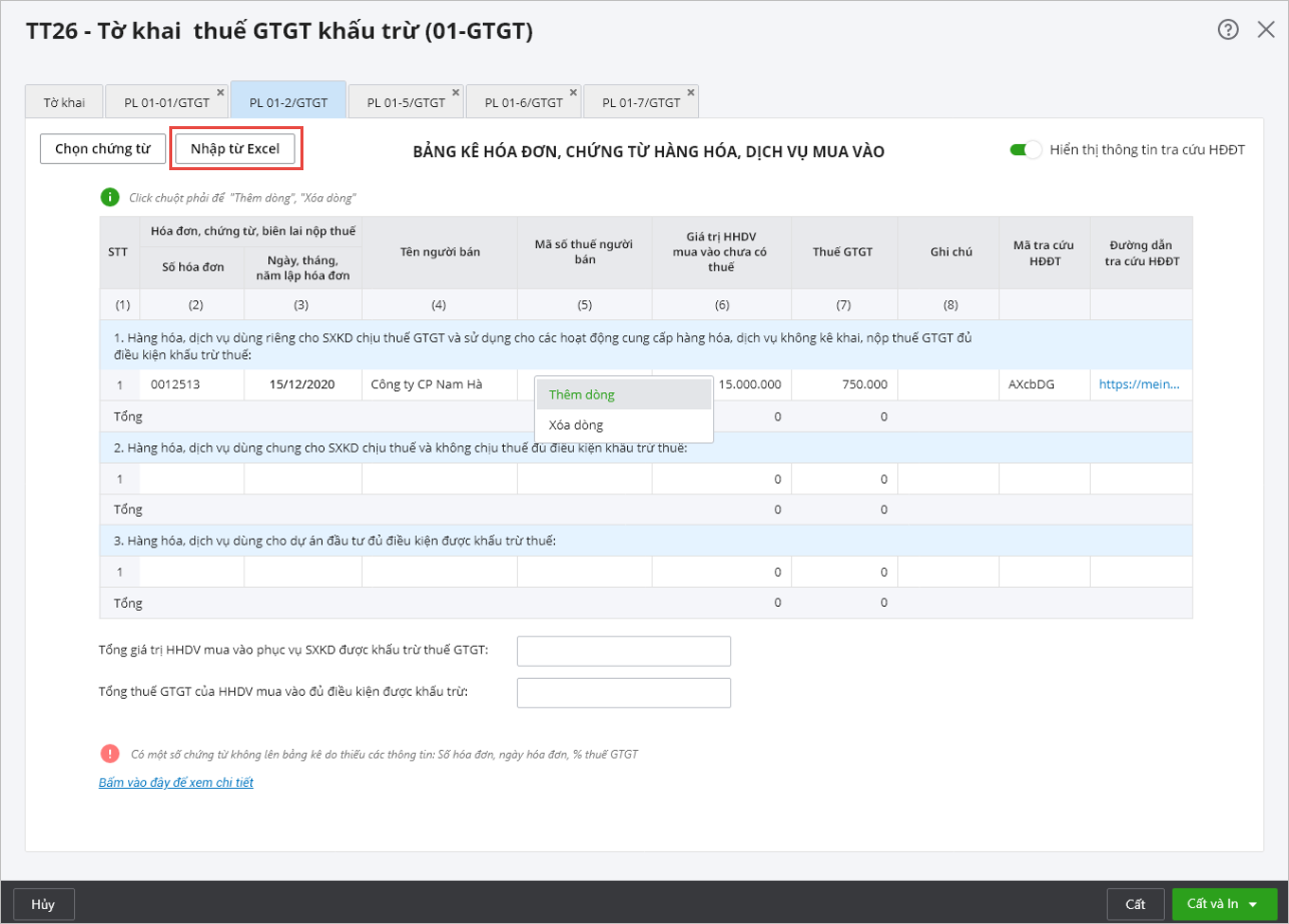 - Giới thiệu tính năng nhập dữ liệu từ Excel vào bảng kê.
