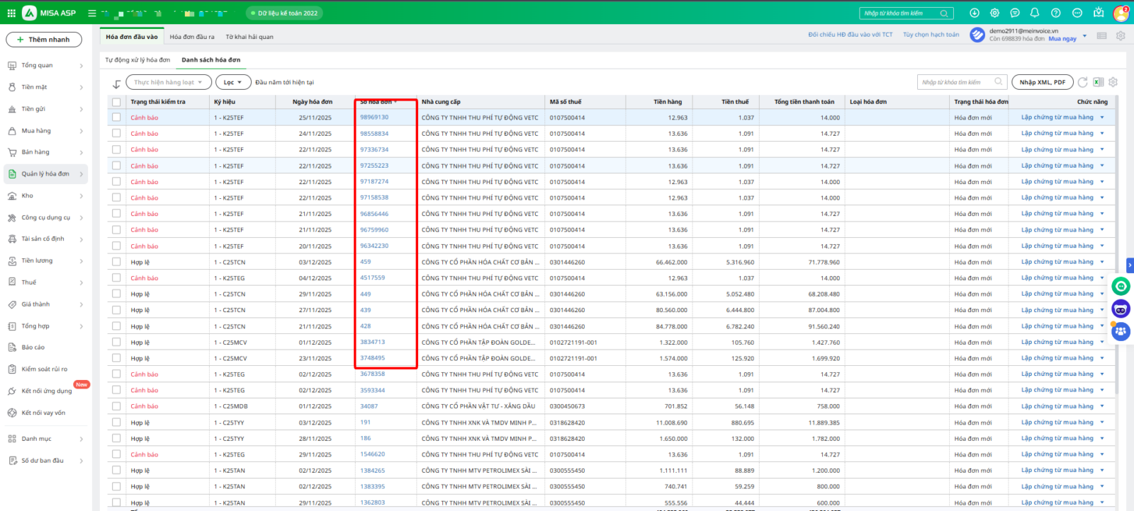 Mục đích: Hướng dẫn cách sắp xếp lại thứ tự hóa đơn trên danh sách hóa đơn lấy từ MISA meInvoice – Dịch vụ xử lý hóa đơn đầu vào.