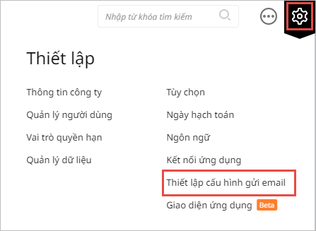 Bước 1: Vào Tiện ích và thiết lập, chọn mục Thiết lập cấu hình gửi email.