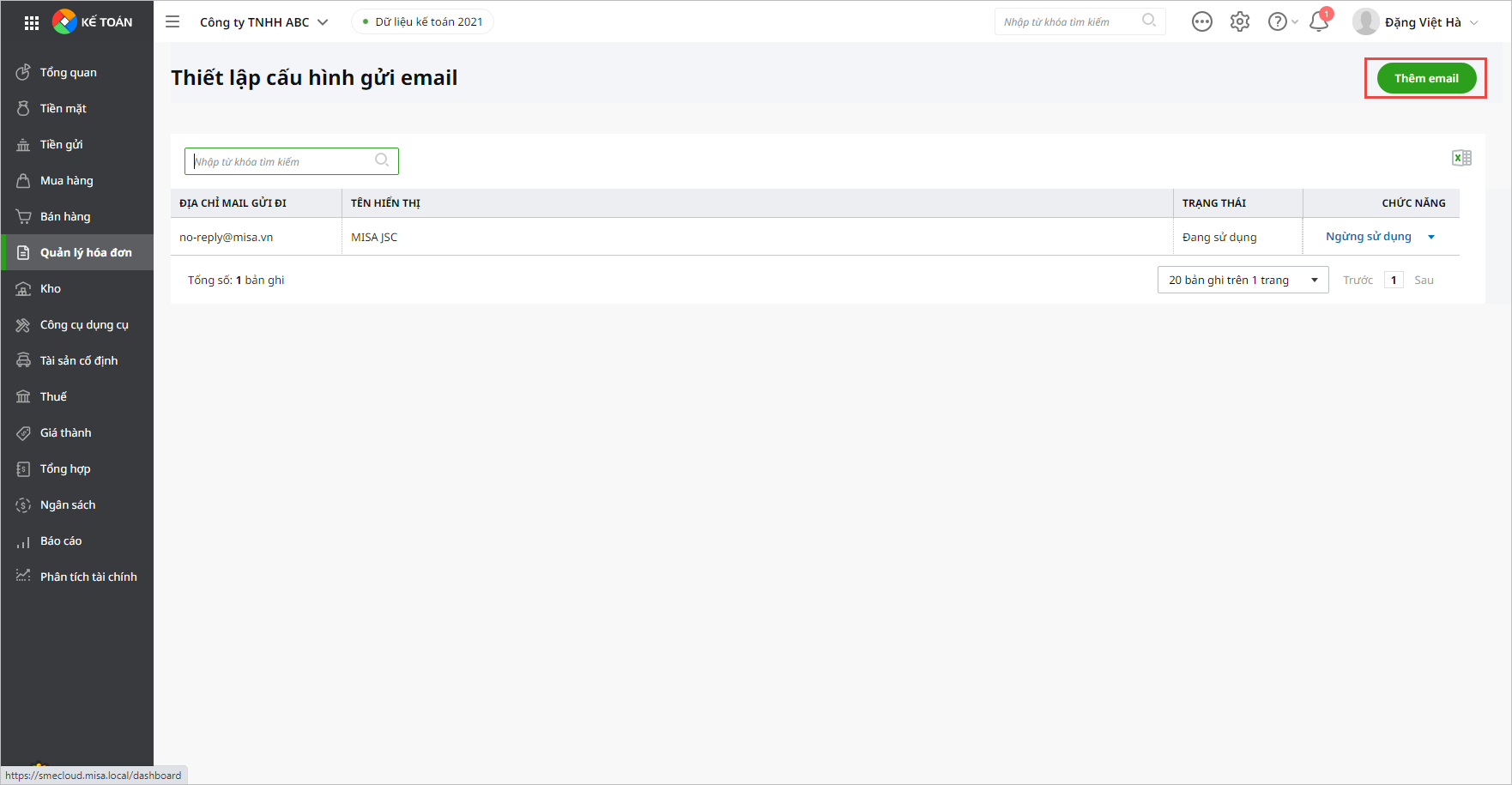5. Cho phép thiết lập email để gửi gửi báo cáo, chứng từ