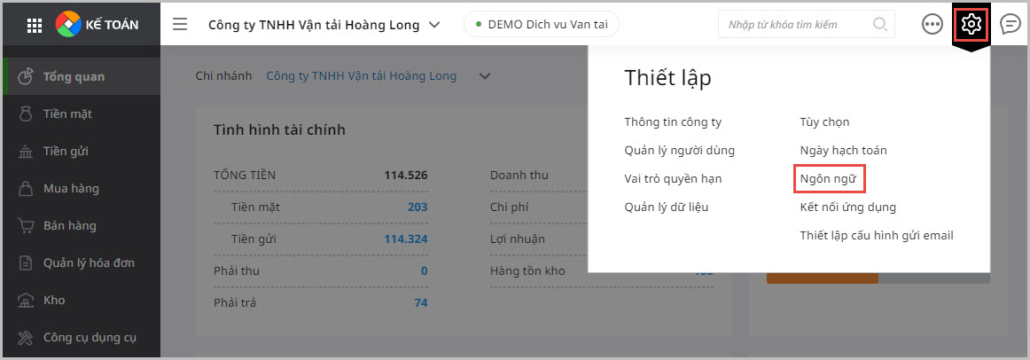 5. Cho phép xem giao diện, báo cáo, chứng từ bằng ngôn ngữ tiếng Anh (Giai đoạn 3)