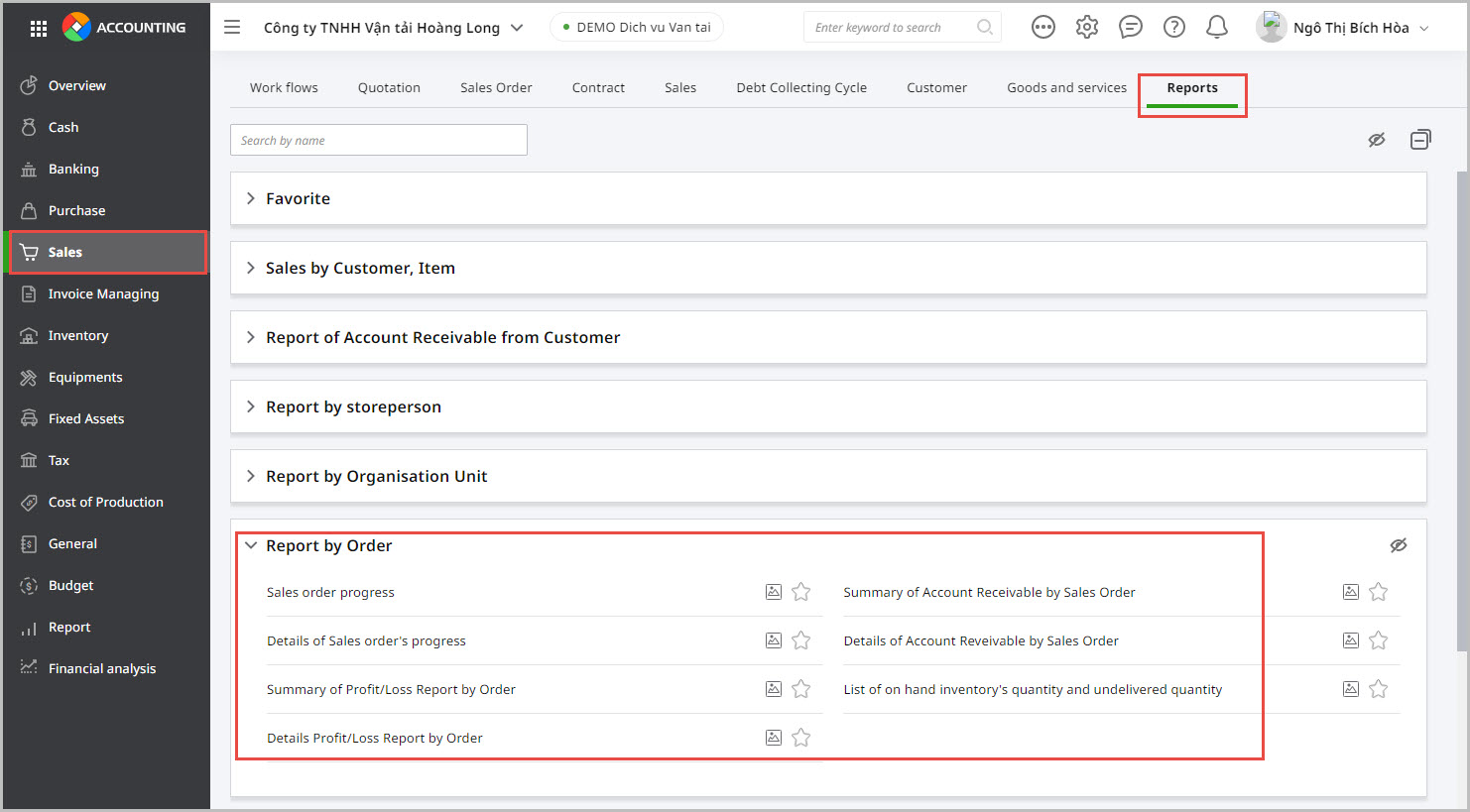 • Báo cáo chi tiết tình hình thực hiện đơn đặt hàng
