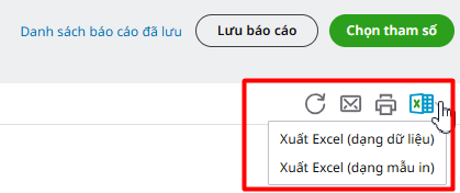 Từ phiên bản R57, người dùng có thể xuất khẩu excel dạng dữ liệu các báo cáo sau: