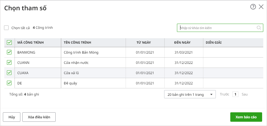 •  Khai báo định mức nguyên vật liệu cho công trình cần thiết lập: