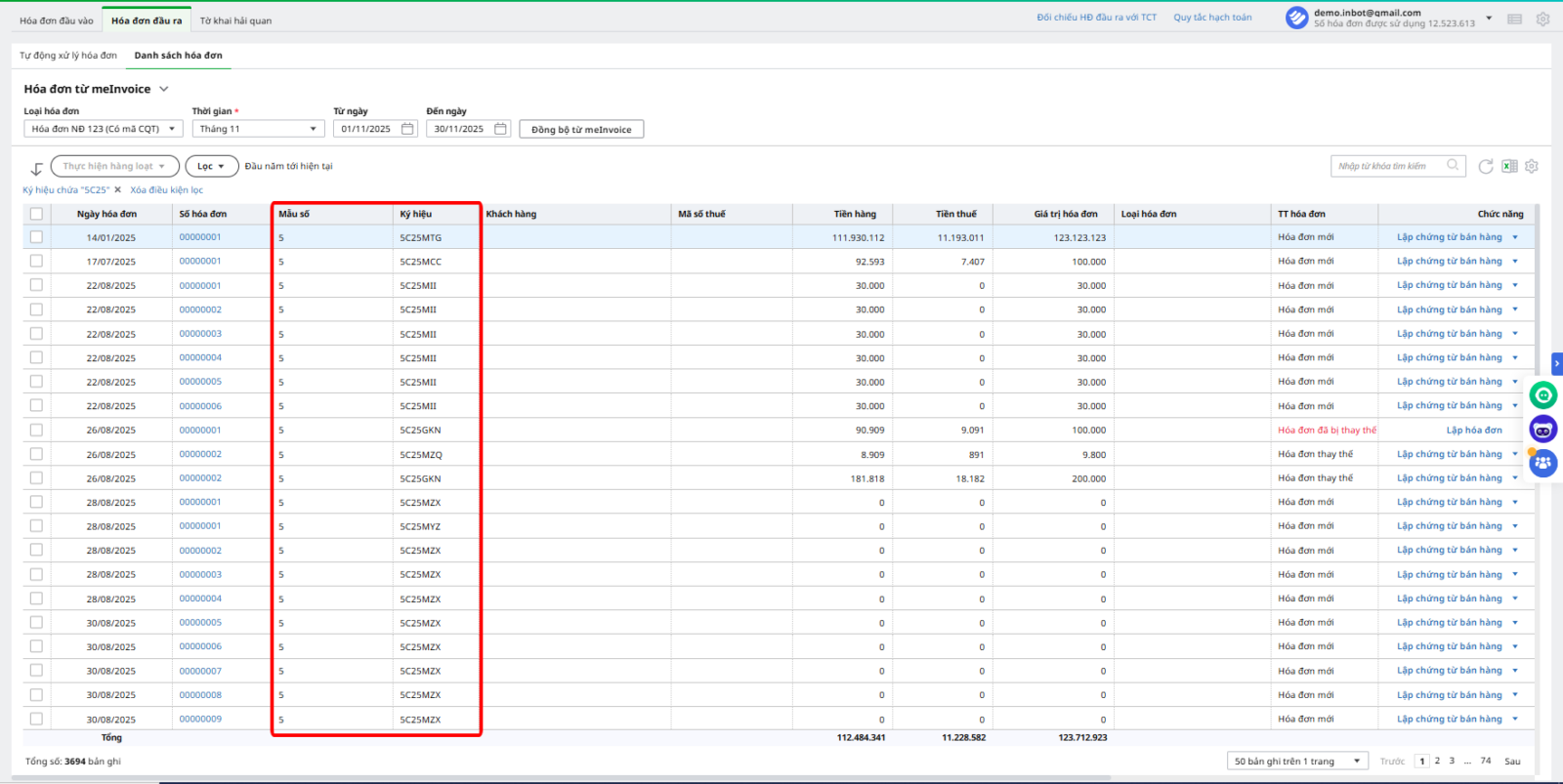 Bước 3: Thực hiện lập chứng từ bán hàng cho các tem vé được lấy về từ meInvoice: