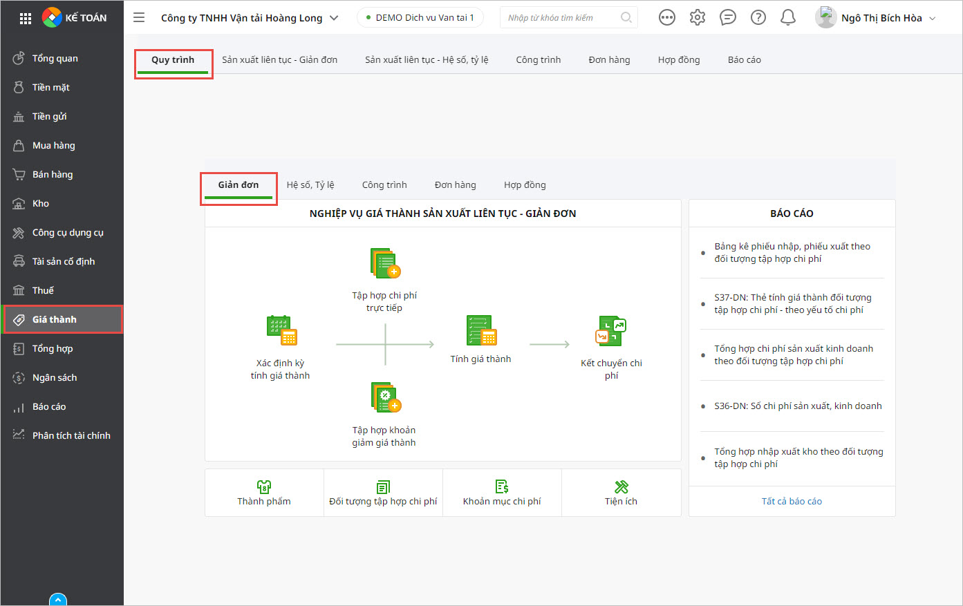 Phần mềm cho phép tính giá thành theo phương pháp giản đơn theo hai Chế độ kế toán sau: