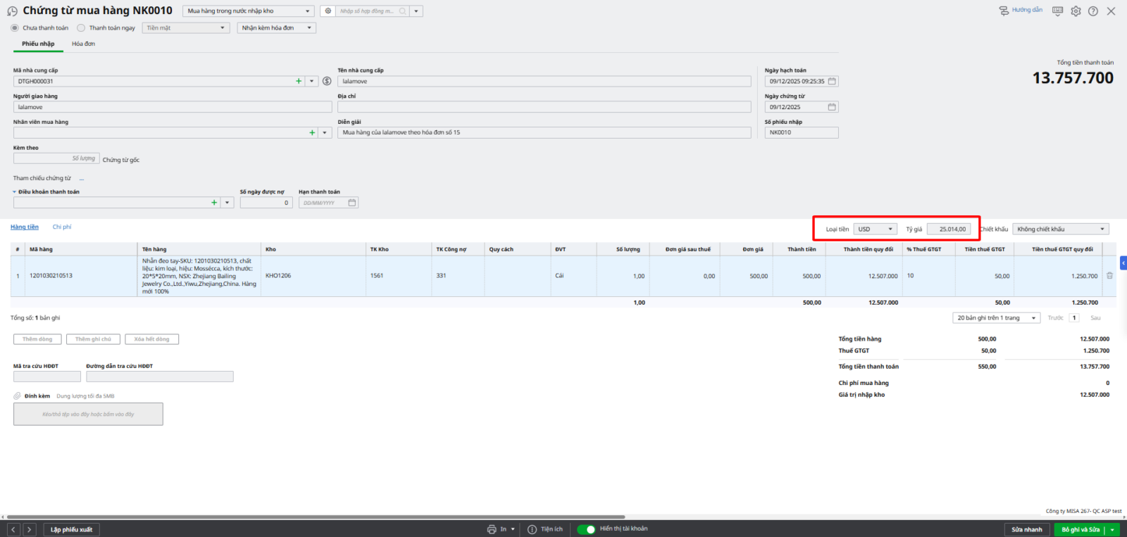 - Hướng dẫn lập chứng từ mua hàng đa ngoại tệ