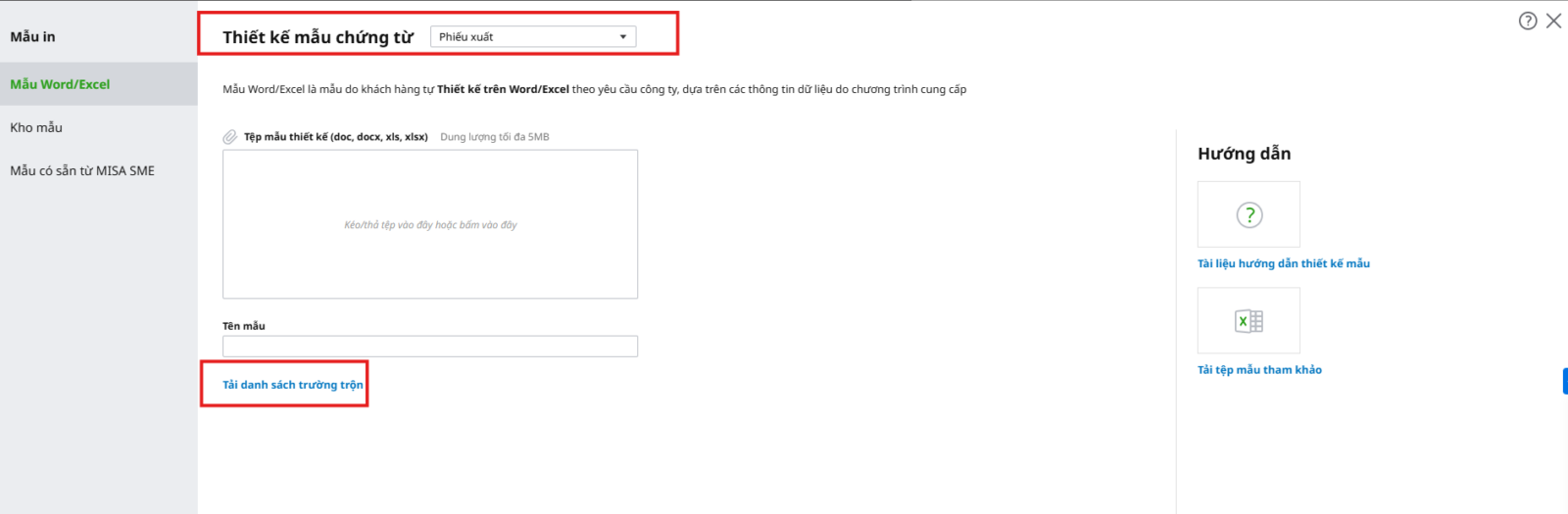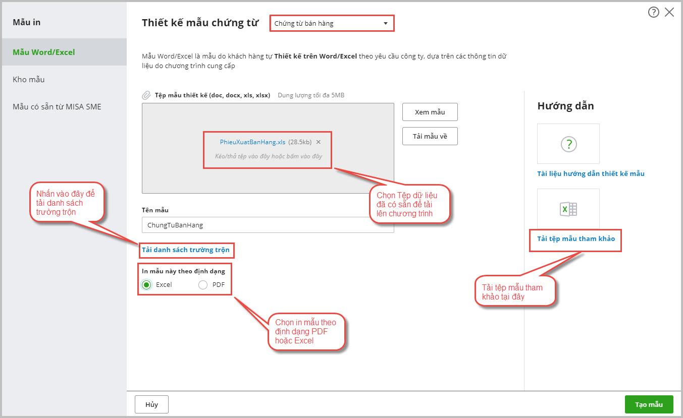- Cập nhật file mẫu chứng từ đặc thù vào phần mềm để sử dụng và in ấn