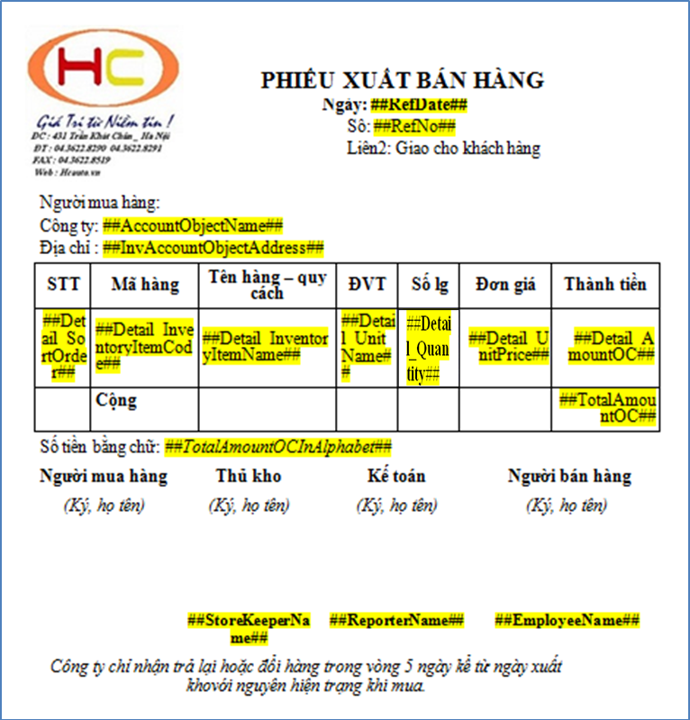 Lưu ý: Các mẫu đặc thù này chỉ thiết kế 1 lần và đưa vào phần mềm, mỗi khi in phần mềm đã có sẵn tên mẫu trong danh sách để chọn sử dụng 2.3. In chứng từ từ mẫu đã cập nhậtMở chi tiết chứng từ bán hàng, chọn In, lúc này mẫu trộn đã thực hiện trộn ở trên sẽ xuất hiện trong danh sách các chứng từ Tùy chọn in.