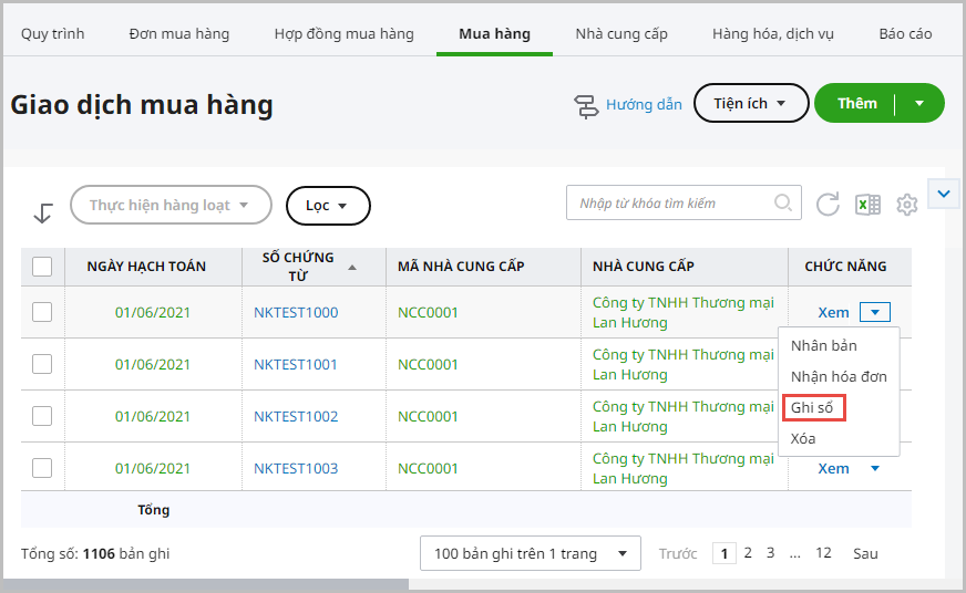 Sau khi nhập khẩu thành công thì chứng từ sẽ ở trạng thái chưa ghi sổ, cần thực hiện ghi sổ chứng từ để ghi nhận bút toán lên các báo cáo, sổ sách kế toán.