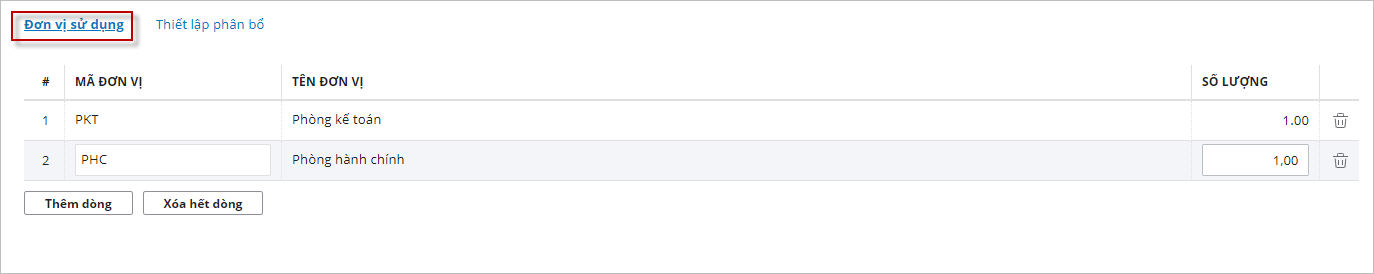 - Sổ theo dõi CCDC: dùng để theo dõi chi tiết về CCDC như: Mã CCDC, Tên CCDC, Số lượng, Giá trị CCDC, Tổng số kỳ phân bổ, Số kỳ phân bổ còn lại, Giá trị đã phân bổ, Giá trị còn lại…