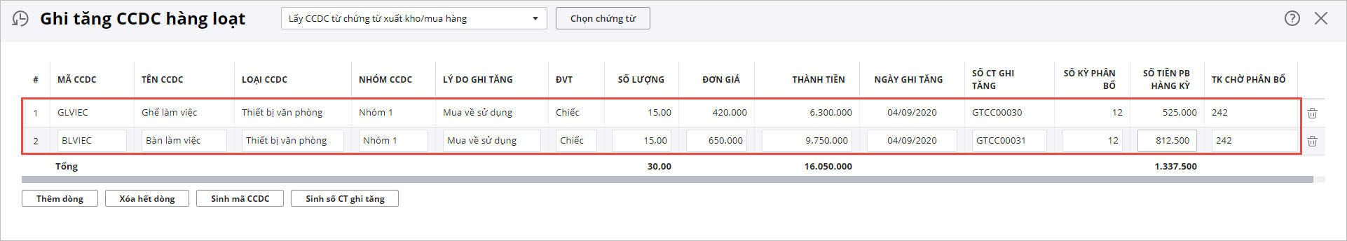 Bài viết hướng dẫn cách khai báo nhiều công cụ dụng cụ (CCDC) cùng lúc, giúp tối ưu hóa quy trình ghi tăng CCDC hàng loạt.