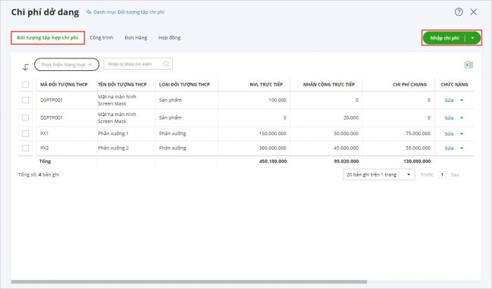 - Nhập chi phí dở dang đầu kỳ cho đối tượng tập hợp chi phí