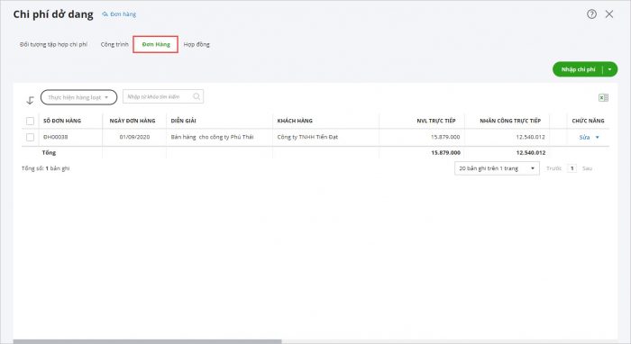 > Chi phí dở dang cho Đơn hàng – ASP Kế toán – Nền tảng kế toán dịch vụ MISA ASP