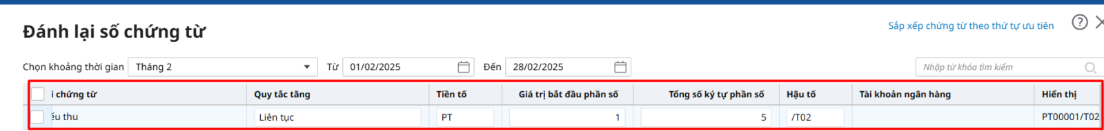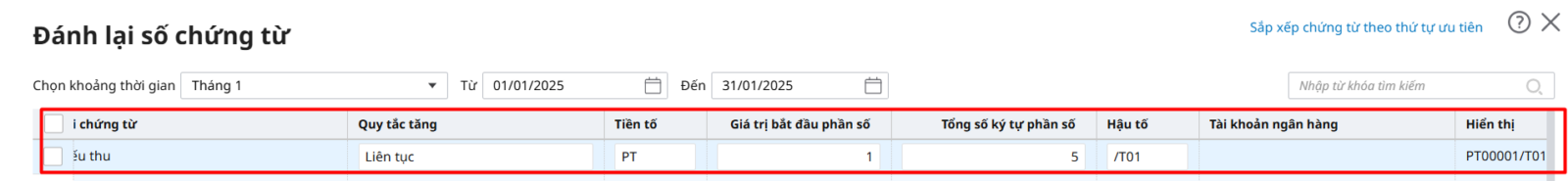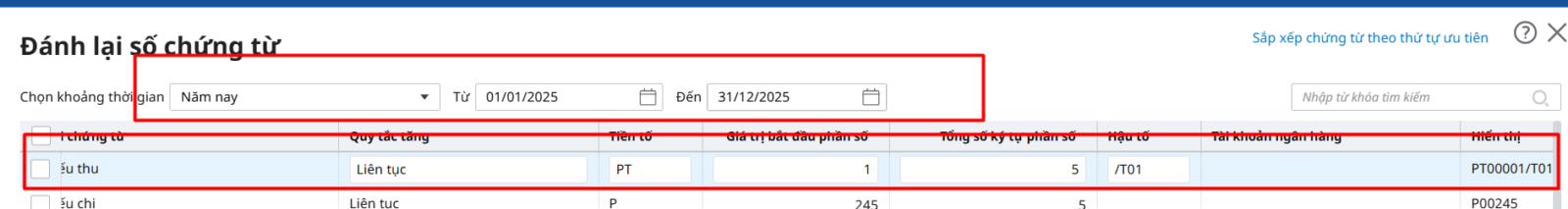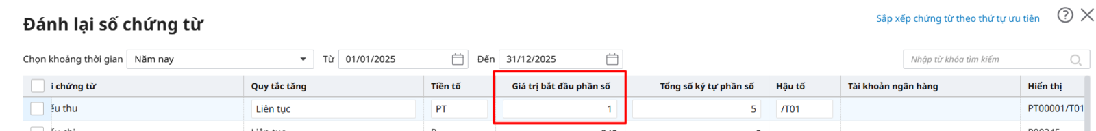 Hướng dẫn thiết lập lại quy tắc đánh số chứng từ