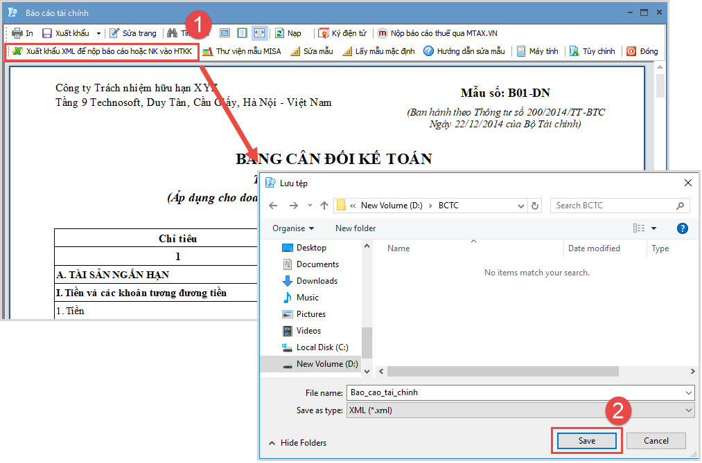 2.1 Xuất khẩu BCTCBước 1: Mở báo cáo tài chính đã lập lên: