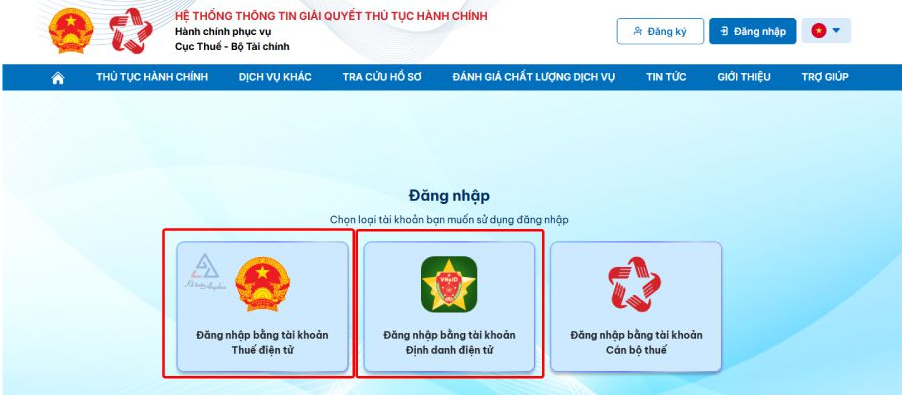 - Đăng nhập vào Cổng Dịch vụ công của Tổng cục Thuế.