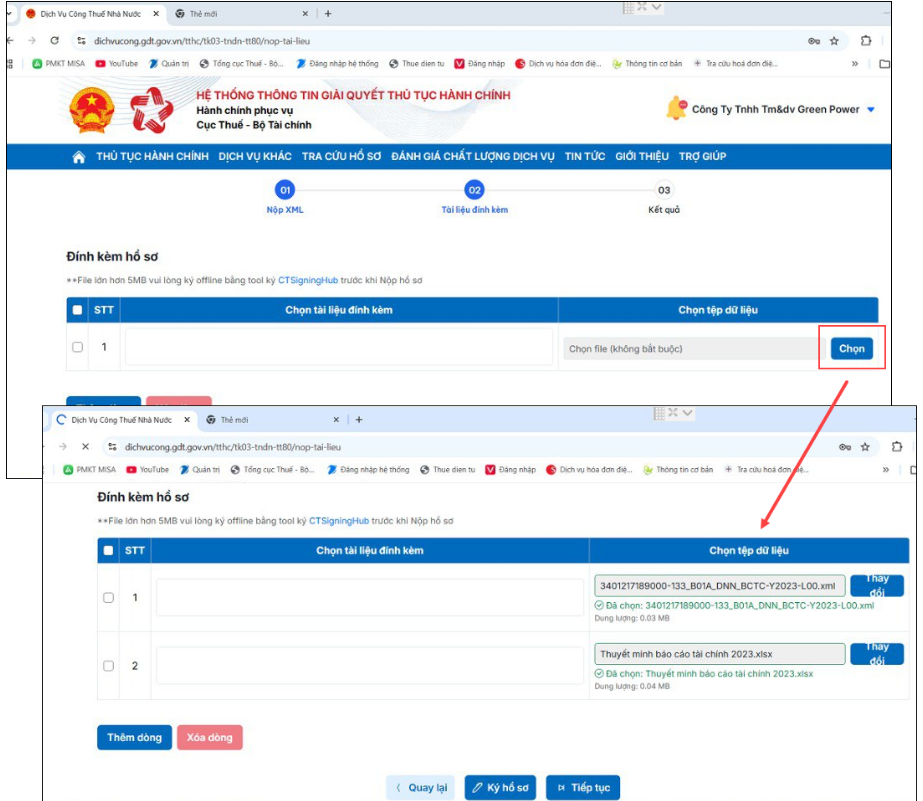 - Đính kèm và nộp Báo cáo tài chính cùng Thuyết minh Báo cáo tài chính.