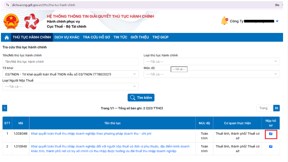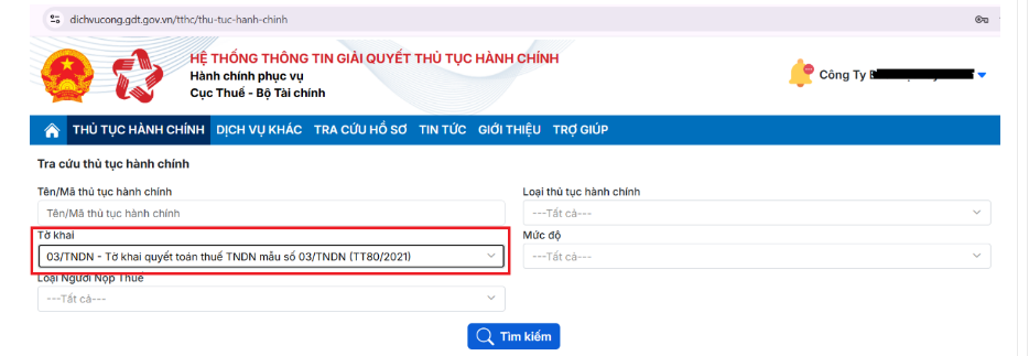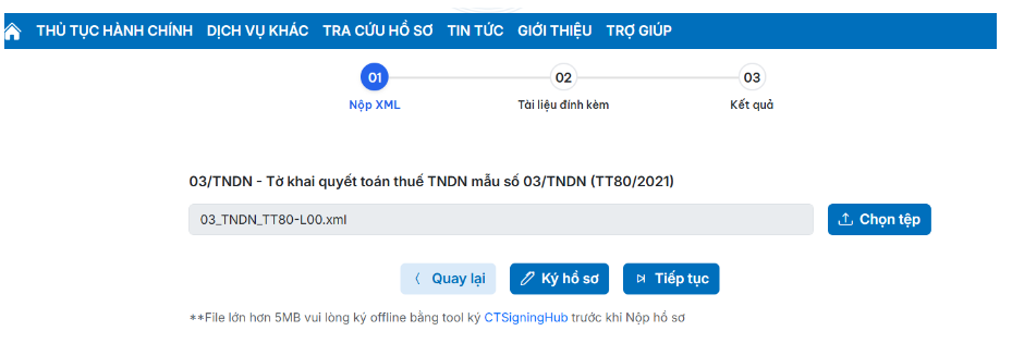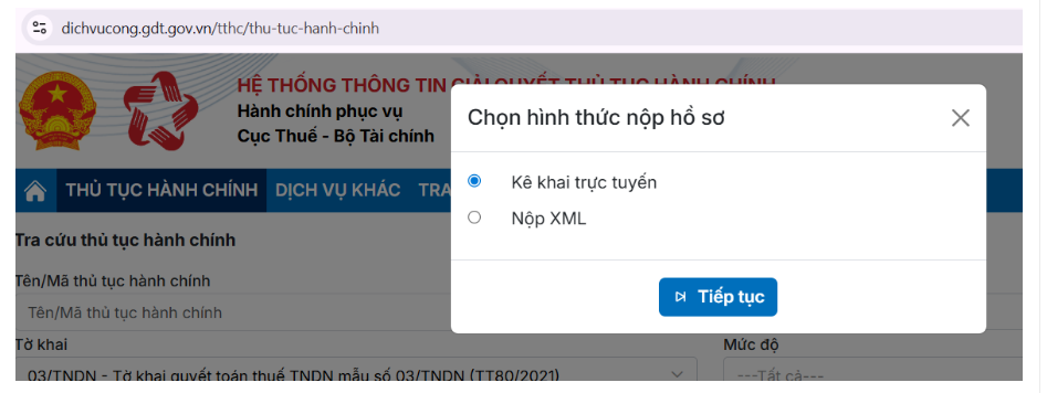 Bước 2: Nộp tờ khai 03/TNDN – Tờ khai quyết toán thuế TNDN (TT80/2021)