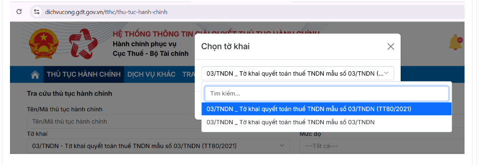 Trường hợp anh/chị đã nộp tờ khai “03/TNDN_Tờ khai quyết toán thuế thu nhập doanh nghiệp (TT80/2021)” nhưng bỏ qua bước đính kèm phụ lục, thì có thể tra cứu lại tờ khai tại chức năng “Tra cứu hồ sơ\ Tra cứu hồ sơ đã nộp” và tra cứu đến tờ khai mẫu 03/TNDN để đính kèm phụ lục tại chức năng “Bổ sung tài liệu”.