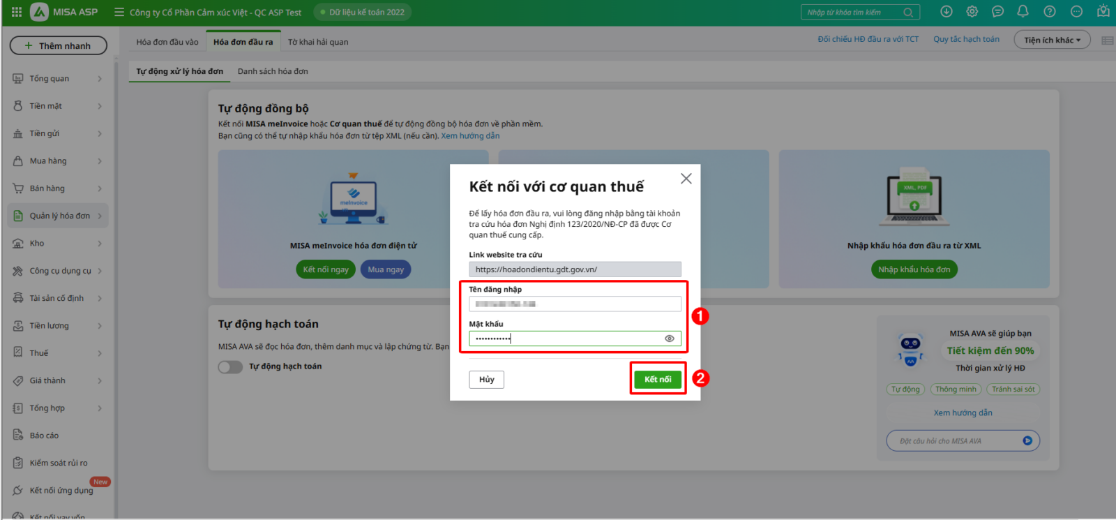 Hướng dẫn sử dụng tính năng kết nối với cơ quan thuế để tự động lấy hóa đơn đầu ra về phần mềm.