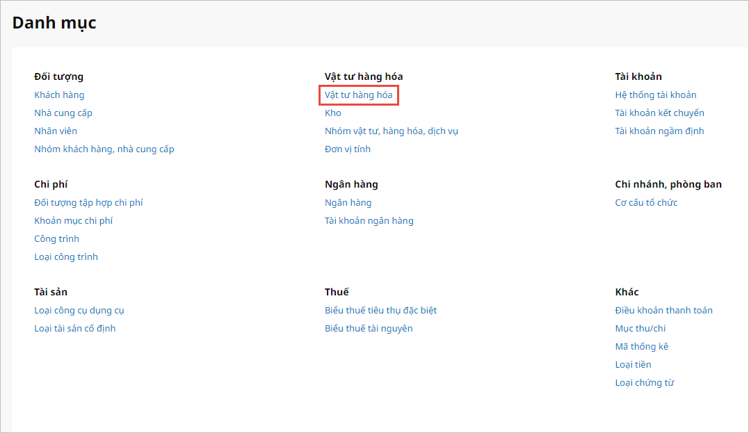 Bước 2: Chọn danh mục vật tư hàng hóa, dịch vụ: