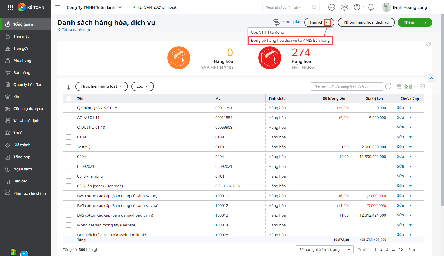 • Hướng dẫn thao tác đồng bộ vật tư hàng hóa, dịch vụ từ CRM về AMIS Kế toán.