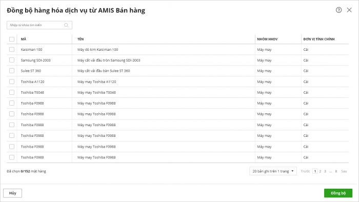 Bước 4: Chương trình hiển thị giao diện Đồng bộ hàng hóa dịch vụ từ AMIS Bán hàng