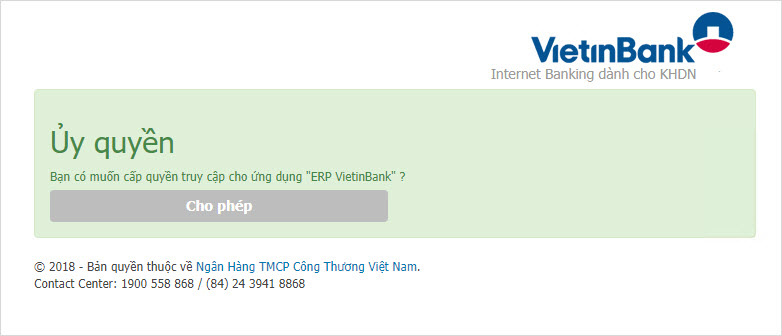 Bước 3: Nhấn Đăng nhập sau đó chọn Cho phép cấp quyền truy cập cho ứng dụng ERP VietinBank.